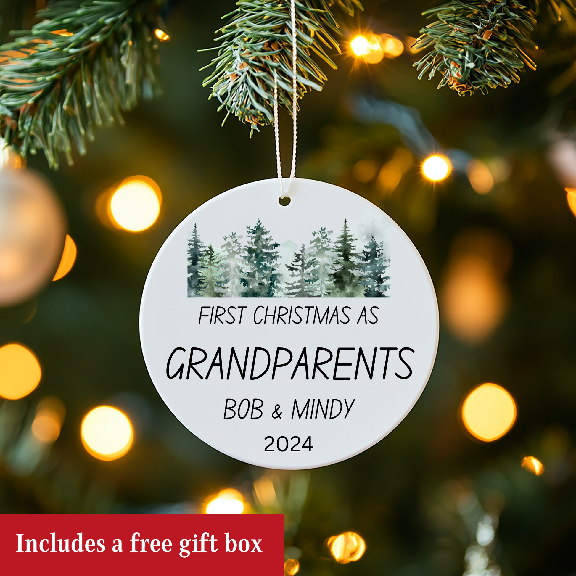 First Time Grandparent Ornament, Ceramic Christmas Keepsake for New Grandma & Grandpa